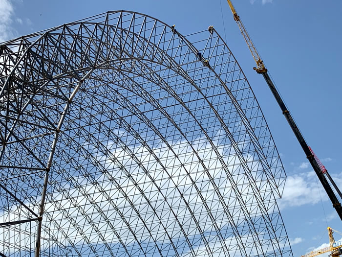 (2)网架加工前应对现场尺寸进行复测,确认无误后方可进行加工、安装;网架制作、运输、安装应遵守《空间网格结构技术规程》JGJ7-2010、《钢网架平顶山螺栓球节点》JG/T 10-2009、《钢网架平顶山螺栓球节点用高强度螺栓》 GB/T 16939-2016、《平顶山钢结构平顶山工程平顶山施工规范》 GB50755-2012、《平顶山钢结构平顶山工程施工质量验收标准》 GB50205-2020。